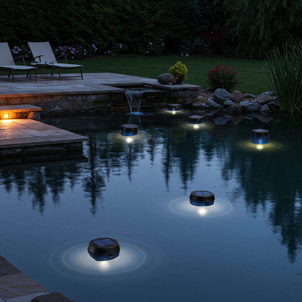 Floating solar lights are a striking addition to ponds, pools, or other water features, providing both ambiance and enhanced safety after sunset. Unlike wired floating lights, solar models require no external power source or hazardous cords, making them safer and easier to install and maintain. These lights charge during the day and automatically light up at night, creating a magical effect as they drift across the water’s surface. They’re available in various shapes and colors to suit different styles.