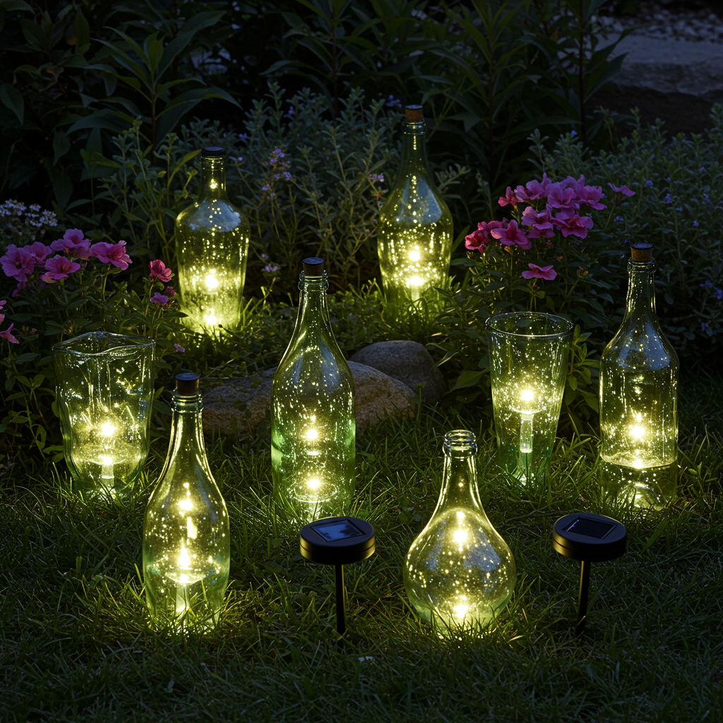 Upcycling glass bottles by inserting solar lights creates unique, eco-friendly garden decor that sparkles beautifully at night. Simply clean and remove the label from your bottle, then fit a small solar light into the opening. This sustainable hack transforms everyday waste into luminous ornaments, offering a creative alternative to store-bought garden decorations that can be costly and less environmentally conscious. Recycled bottle solar lights can be grouped for a colorful display or used individually as accent lighting.