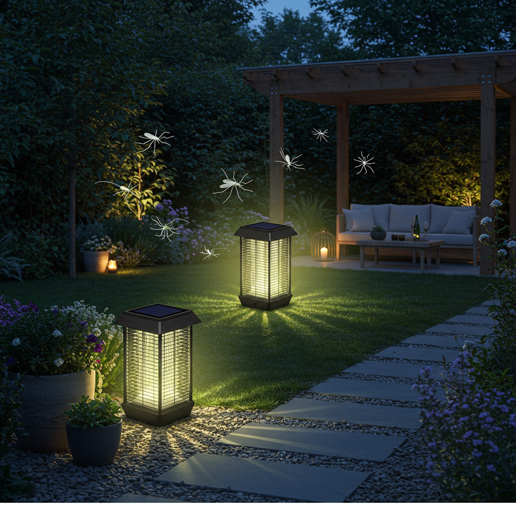 12. Solar-Powered Bug Zappers for Functional Lighting